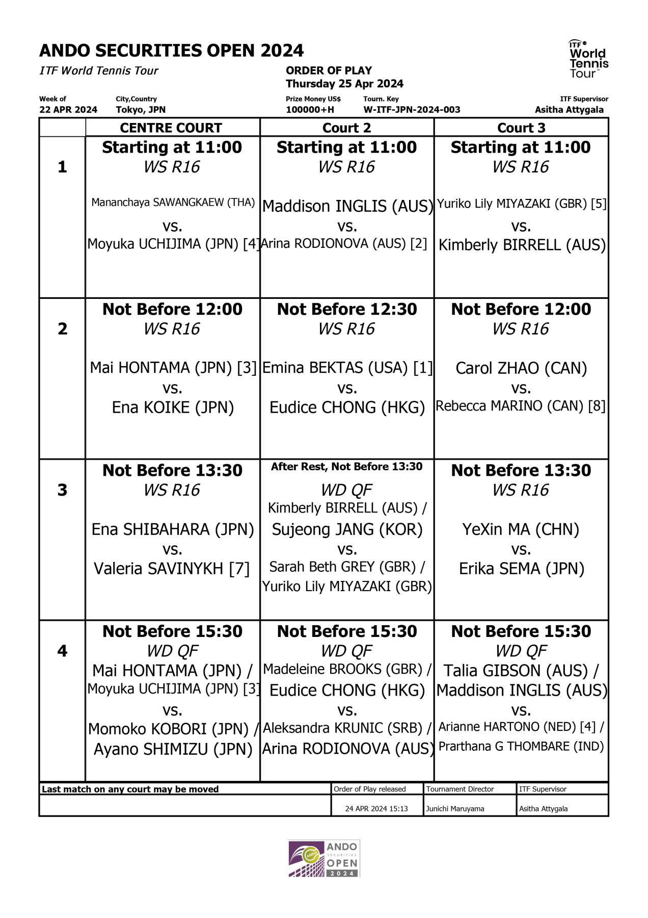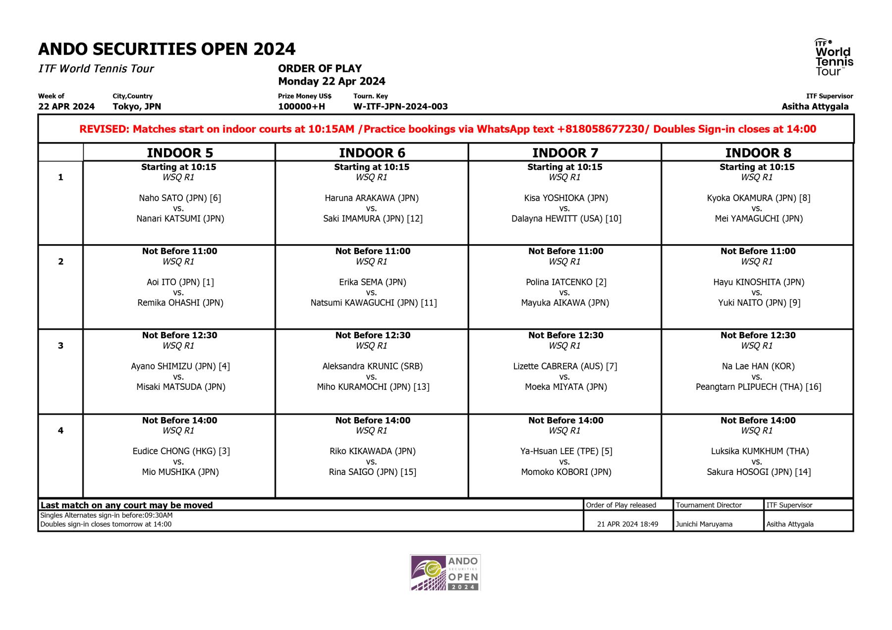 Date Schedule/Draw Singles Schedule/Draw Doubles